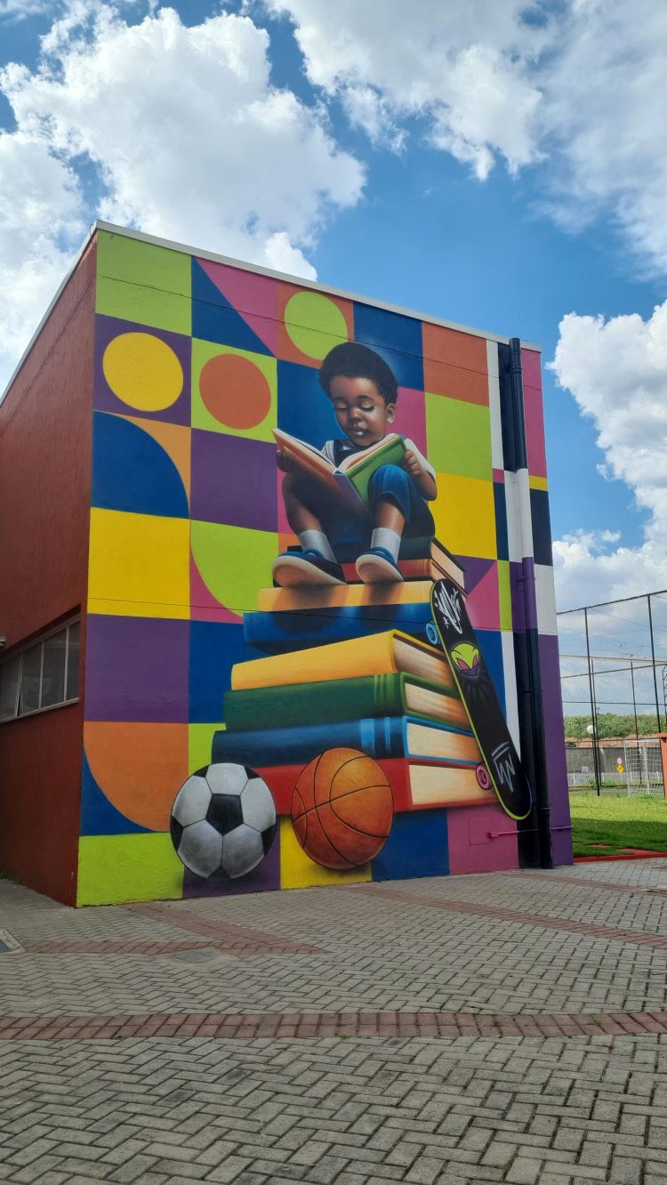 O painel, instalado na unidade educacional, reforça o papel do graffiti como ferramenta de diálogo, educação e transformação social. Em sua criação, Del Grafites destaca a importância da educação e do esporte na formação das crianças, utilizando cores, movimento e simbologias que representam diversidade, pertencimento e potência criativa.